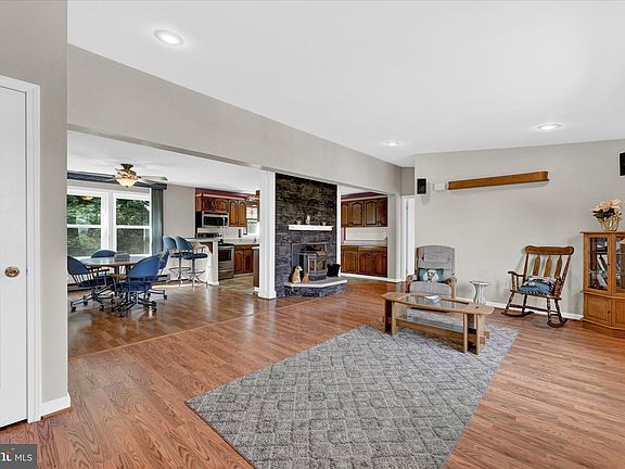 Remarkable oversized rancher, nestled on over 3 acres of serene countryside, offering beautiful panoramic views. This unique property boasts a custom two-story woodworking or mechanic shop, a dream space for any hobbyist or craftsman, conveniently attached to the main residence. With an additional attached two-car garage and a detached storage pole building, you'll have ample space to store all your tools and equipment. Great space on the main level with an open floor plan and a fully separate in-law apartment on the lower level. It's complete with its own kitchen, full bath, laundry facilities, and a dedicated heating system. This private apartment offers versatility and convenience depending on your needs. Freshly painted throughout and brand new carpeting on the lower level. Hereford schools and convenient location to Hampstead!
