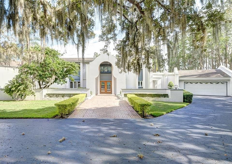 Rare Lake Keystone oasis, with 190' of lakefront, 4 bedrooms, 3.5 baths in the main house, + guest house and another detached garage/workshop on 2+ aces! The main house offers a downstairs Master bedroom with walk in closet, french doors to the pool and lake views. Formal Living also features french doors and pool views. Formal Dining with skylights and situated just off the spacious Kitchen, with an abundance of cabinets and Corian countertops, an island, 2 pantries and separate dinette. The massive Family Room offers panoramic views of the lake, with wall to wall french doors and windows and fireplace. Upstairs you find an in-law suite with its own bathroom and 2 more guest bedrooms, share a guest bathroom. The screened in lanai houses a large pool, a great place to play after a day on the lake. Composite boat dock with lift. Guest house has 1 bedroom/bathroom, kitchenette and a garage. Detached garage 39x19 garage is a great place to store toys or have a workshop. Truly a unique space, must see to appreciate its beauty.