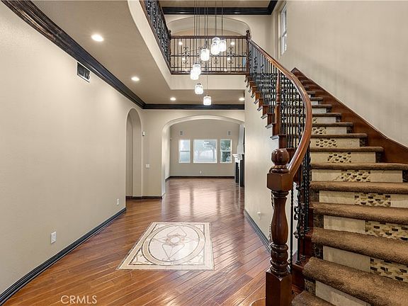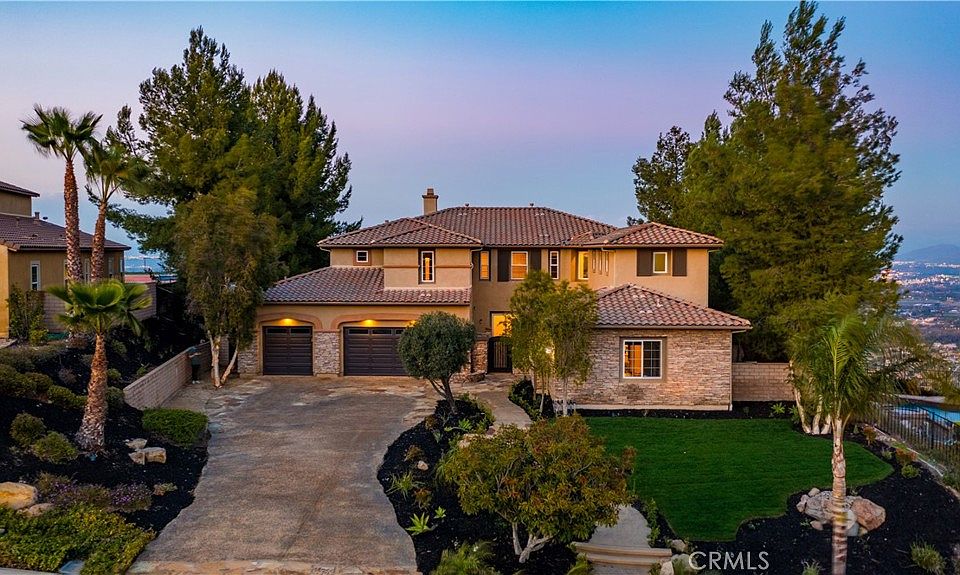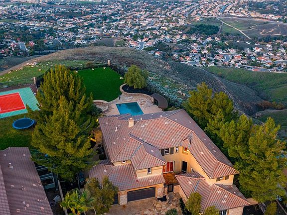 $200K Price Reduction: This Lake Hills Reserve largest and desirable floor plan and lot. Nearly ¾ acre flat at approximately 1,800 feet elevation you are blessed with breathtaking views of the Inland Empire all the way to beautiful Southern California’s inland mountain ranges as well as a gorgeous water views of Lake Mathew. Wrought iron gate inlayed with wood accents into a private courtyard with a tranquil water feature. This impeccable turnkey home features 5,370 square feet which includes 4 bedrooms with 3 ½ bathrooms in the main residence. A full mother-in-law quarters features a private entry door from the courtyard with a living room, dining room, and full kitchen granite counters with custom bull nose and full backsplash which is beautifully designed as well as new stainless-steel appliances and an attached elegant marble bathroom. The main residence offers a dream floor plan with wrought iron features throughout, including staircase and high ceilings. Hardwood floors with marble accents. Custom cabinets and quartz counters with waterfall island and full quartz backsplash, stainless steel appliances, and larger cooking range. The Master bedroom en-suite is fit for royalty no expense sparred featuring custom marble and travertine, walk in shower, jetted tub, His/her closets. Large master balcony with ariel views for days. Upstairs features imported high quality carpeting which is stain resistant. This residence features oil rubbed bronze doors, casings, baseboards, and oversized custom crown molding throughout which gives an extremely elegant touch. All custom. Matte black plumbing features with spray wands and water fall spouts in every shower. Matte black door levers and cabinet pulls. An amazing blend of modern and Tuscan elements. A driveway with pebble tech, flag stone and custom concrete throughout the hardscape of the entire property. Fully irrigated with solar landscape lighting. Wired for low voltage landscape as well. Oversized pebble tech swimming pool with laminar water features. Large 2 story children’s playground, expansive BBQ. Fully grown mature pine and olive trees, palm, and California pepper trees as well as other vast foliage. 3 car attached garage with custom cabinets and work area. Bosch alarm system, fully ethernet wired throughout, outlets and wiring for entertainment in many areas of the home. 3 elegant fireplaces with black finishes and stone features. Potential income producing property at the mother-in-law guest suite.
