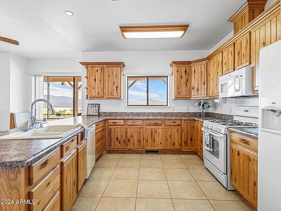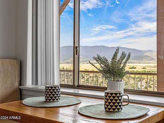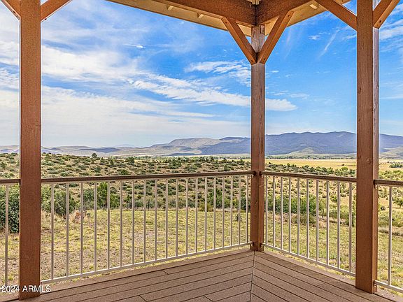 CUSTOM BUILT BEAUTIFUL HOME, 1+ ACRES, 3 CAR GARAGE, BREATHTAKING VIEWS. 2 HORSES OK! This home and property has charm and appeal galore and was strategically positioned to enjoy the views, both inside and out. Gorgeous 'L-shaped' deck provides a huge covered space to enjoy the great outdoors and magnificent landscape. A portion of the porch is screened in to accommodate seasonal changes. And the 2 seat booth off the dining room, AKA 'The Perch', is a lovely spot to take in sunrises inside with a morning cup of Joe. So many choices! NO HOA! NEW ROOF! NEW HOT WATER HEATER! Gorgeous wood cabinets in the spacious kitchen provide an abundance of storage. In fact, this home has plentiful storage throughout, including tons of built in cabinets in the garage. ** CLICK 'MORE' FOR ADD'TL INFO ** There's a room off the owner's suite which is perfect for an office / studio / sewing or craft room. The 'wing' with the 2 guest bedrooms also has a small sitting area / room. The patio off the screened in porch makes for a perfect BBQ area. NOTE - There is an exterior shed in addition to the garage and the garage also has a half bath. This home just has so much character and pride of ownership is evident! On over an acre of land, with no homes to the east, you'll have expansive views yet a private feel. Easy access from PAVED road and loads of parking space for friends and family... if you wish. :) Peeples Valley has 4 mild seasons, blue skies and fresh mountain air. Just 35 minutes from Wickenburg, 50 minutes from Prescott and 1.5 hours from Phoenix, you can enjoy a peaceful retreat yet still be close to amenities and conveniences.