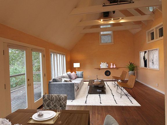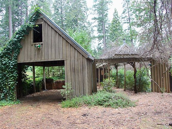 Private Setting with Breathtaking Canyon And Ridge Views! The main house is architecturally designed, with exposed beam vaulted ceilings. There are lots of windows throughout with views from almost every upstairs room and from the large deck. The home has an appealing layout with 3 bedrooms, 2 baths on the main level and a living area or guest quarters downstairs with a bath, wet bar, brick flooring, and a separate entrance. The pine floors on the main level were made from trees on the property. There is ample storage, the house is apparently wired for solar. The grounds are landscaped with flowering trees. There's also a 1200 sq. ft. fully Insulated shop with Heat/ Air Conditioning, full bath shower, office space, workshop, roll up door and loft. It could be a great guest quarters with some remodeling.Is less than 25 minutes to Nevada City and close to famous Yuba River swimming holes. Access through Ananda Village. It is in need of some repairs and updating. some virtual furniture