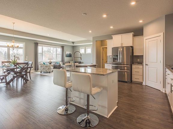 Incredible opportunity to purchase this like new rambler on a premium lot in the Hamlets of Rush Creek. This beautiful home Features an open floor plan/incredible entertaining space, box vaults in master and living room, extensive window upgrades, main floor laundry, premium walk out lot-Newly finished walk-out lower level adding another bedroom, bath and storage featuring top of the line carpet, pad, trim and doors. Plumbed for future wet bar with a ton of space to entertain! New flooring, large walk in master bath and closet, large 2nd & 3rd bedrooms, solid stone surfaces throughout, gourmet kitchen,& upgraded appliances. The neighborhood boasts convenient access to schools, parks, shopping & lakes. WHY BUILD WHEN YOU CAN OWN THIS and MOVE in NOW! Quick close available.