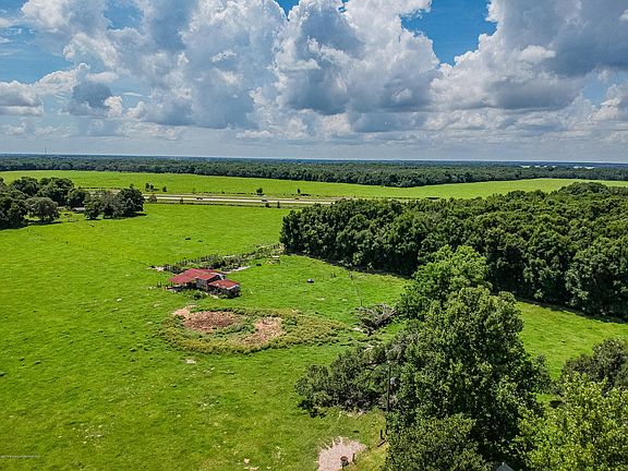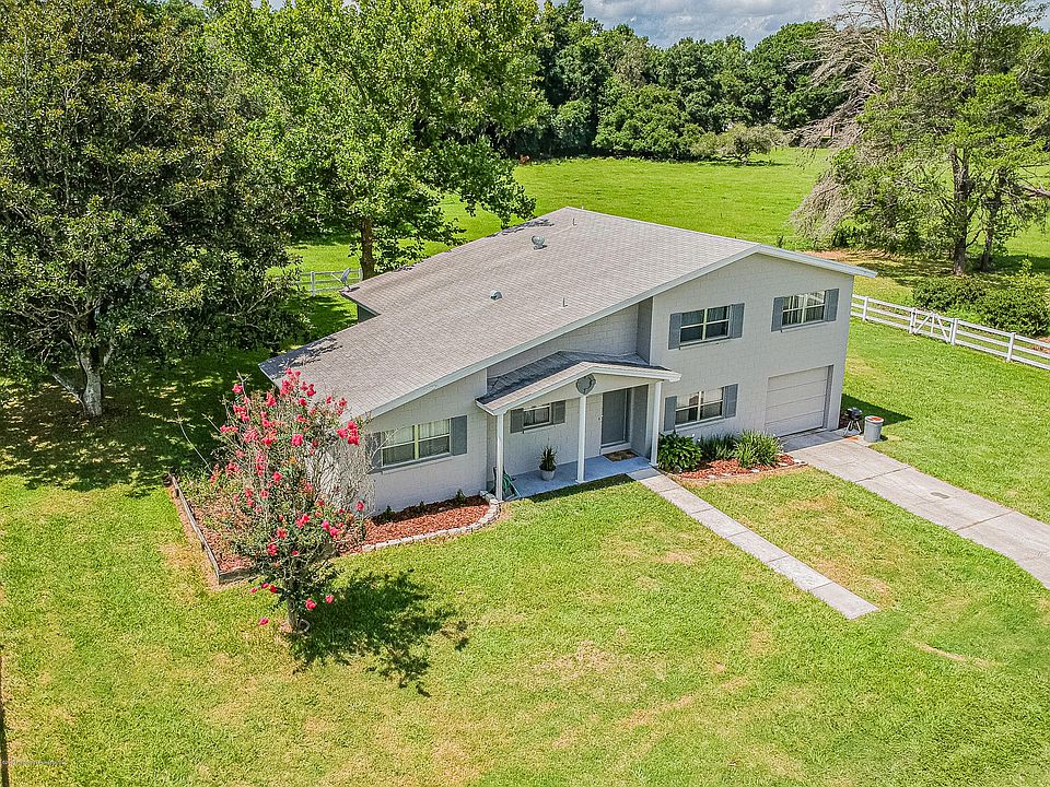 Rare opportunity to own 47 prime, fenced acres of beautiful, cleared pasture land with charming 2 story 4 bedroom home! Bring your pigeons, horses, cattle or other livestock. Close to Suncoast Parkway, buyer could easily access the biking/walking trail. Buyer could subdivide if desired. Currently some of the land is leased for cattle grazing on a month to month lease which could continue if desired. House custom built in '67 w/ terrazzo floors downstairs & updated w/ wood laminate flooring on top, granite kitchen counters & '18 refrigerator. Updated bathroom has quartz counter. Real hardwood floors upstairs. Roof approx '01 per seller, doesn't leak but will be replaced w/ acceptable offer. House painted in '16. Don't miss this chance to make this lovely, unique property yours!