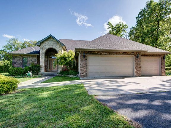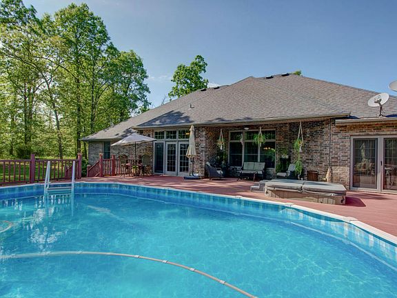 All brick home on almost 5 acres. Home sits back from road with a long asphalt drive. There is also a shop and a pool and hot tub surrounded by a 44x35 deck. The home is bright with lots of windows. Owners have replaced furnace and ac units, and a new roof is being put on home in the next month. Master suite has patio doors to the deck, 2 large walk-in closets, two sinks, shower and garden tub. The kitchen has center island, pantry and extra cabinets. Stunning entry with formal dining area and breakfast nook. The tall shade trees give this property the feeling of a park. Located just a mile from Aurora Wal-mart but has the feeling of total seclusion and peace. Don't wait to see this one.