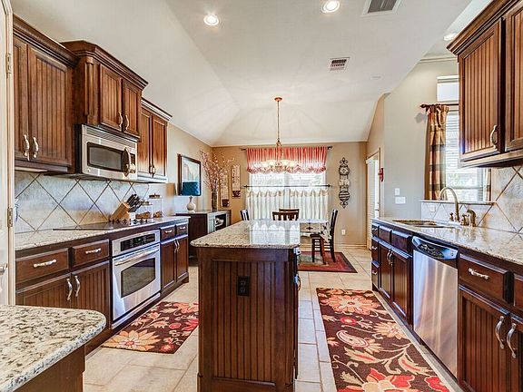 Outstanding Home with Immaculate Décor & Very Functional Floor Plan! 3 Beds, Cozy Living Room with Crown Molding and Brick Fireplace. Formal Dining and a Large Study with Built-Ins. Spacious Kitchen with Stainless Steel Appliances and Granite Counter Tops, Dining Room and Breakfast Bar. Nice Size Master Bedroom and Bathroom with Extra Storage. Unique Paint Finishes, Oversized 3 Car Garage with Large Storm Shelter. Underground Sprinklers, Fabulous Landscaping in Front and Back Yard. Huge Backyard with Pergola. Valencia is one of Edmond's most Desirable Neighborhoods Offering 30 Acres of Parks, Water Splash Pad, Walking Trails, Playgrounds, Baseball Diamond and a Soccer Field. A must see!