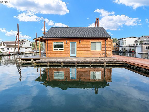 Nearly new, floating home on the Columbia River. Perfectly sized, it offers a modern blend of comfort and luxury touches throughout. Spacious and vaulted living area bathed in natural light with luxury vinyl plank flooring throughout main level. The well-appointed kitchen boasts stainless appliances, range, dishwasher, fridge, pantry, and sleek concrete counters. Generous main level bedroom and lofted and vaulted upstairs bedroom/bonus area. Step outside to your wraparound deck, with the River at your doorstep. Will-Jan Marina with leased slip. Don't miss this rare gem!