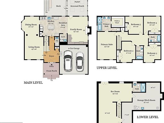 Wow - it's rare to find an Olney home with 5 bedrooms and 3 full baths on the upper level and set on a cul-de-sac backing to woods! The brick walkway leads to a charming brick porch - who doesn't love a front porch?! When stepping inside, you'll appreciate the hardwood foyer and large living room with palladian windows to the left. Beyond the living room is a sizeable dining room with a bay window and a view of the wooded paradise. The kitchen has rich granite counters, an island, gas cooking, a double window over the sink, a pantry, a cozy breakfast area as well as a laundry room with a utility sink. The spacious family room with an abundance of windows has brand new carpet, as well as a gas fireplace perfect for chilly evenings. The entertaining/living space doesn't end there - off of the family room is a gorgeous screened porch with a cathedral ceiling, skylights and a light/ceiling fan. Off of the screened porch is a large deck with built-in seats and stairs leading to the rear yard. Venturing to the upper level, you will find a primary suite with cathedral ceilings, as well as a primary bath with double sinks, a soaking tub, shower, separate toilet room, as well as a large walk-in closet. Two hall baths, both with tubs, and three substanial sized bedrooms complete this wonderful level. The newly renovated lower level has a family room and a perfect area for a 6th bedroom/au pair room or private home office - the proper window is already there and a half bath with a rough-in for a full bath is just waiting to serve as a home within a home! Additionally, there is enormous storage space! This gem offers a short walk to Medstar Montgomery Medical Hospital/doctor offices - in fact, it's a "10" walking score - you can walk to awesome restaurants, Harris Teeter, and more! The James Creek subdivision offers a pool, clubhouse and tennis courts as well!Brooke Grove ES, Farquhar MS and Sherwood HS RECENT UPDATES: Microwave 2024; 75-gallon hot water heater 2023; sump pump 2023; HVAC 2022; dishwasher 2021; roof 2017