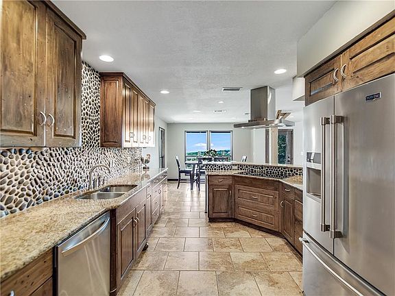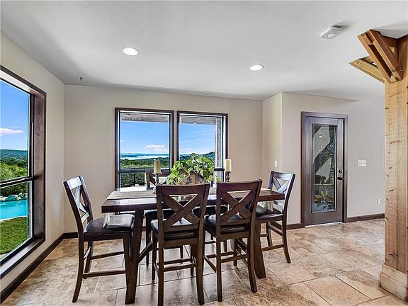 Lake Travis views on both levels. 3 bedroom/3 baths with loads of built ins and special features. Impressive master suite..bath flooring features automatic heating when cold, jetted tub, walk-in shower, sizeable walk in closet with built ins, wet bar with refrigerator. Office/flex room. Tankless water heaters. Outdoor living at it's best....pool, large deck with lake view, cute chicken coupe all set on .87 acres. No HOA, park your boat or RV. AND, 1.92 tax rate! Jones Harbor Marina just down the street.
