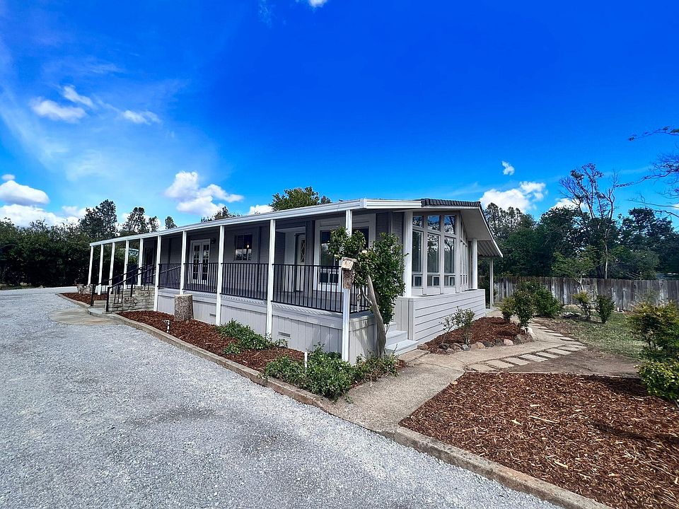 Beautifully updated Manufactured Home on a permanent foundation. 2 bed/2bath plus a large office on a flat half an acre. Indoor laundry, enclosed patio in the back and a covered patio in the front, fruit trees, 1 car garage and oversized parking for all your toys. Roundabout driveway and 2 gates. Move in ready!