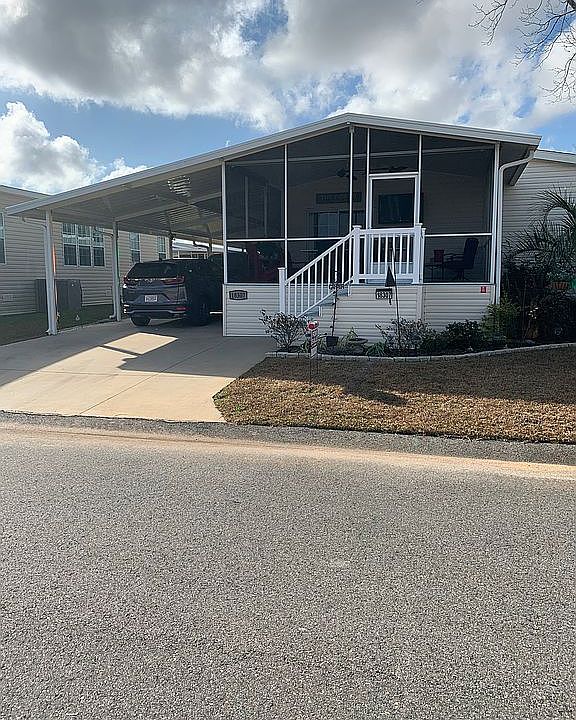 The Foley Grove a 55 and over active adult community with numerous amenities including pickle ball,tennis,shuffleboard,exercise room ,pool, games and crafts. This is a 2019 manufactured home by Champion,over 1500 sq ft with 3 bedrooms and 2 full baths, large kitchen/dining room with coffee bar, New fireplace in the living room. A large screened in front porch. Attached carport and storage room,Sprinkler system,l Mowing included in the association fees. Come see The Grove it’s a friendly, safe and beautiful place to live!