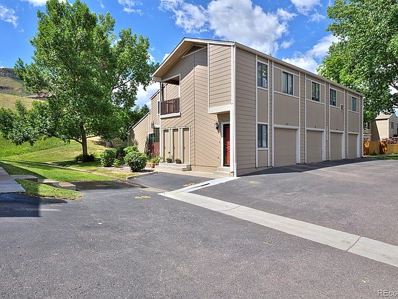 Discover the gem you've been searching for in Golden, CO! Nestled in the newer section of the community. One of the rare homes backing onto North Table Mountain, privacy is paramount here. A large, manicured side yard shaded by mature trees offers an ideal spot for socializing with neighbors or hosting intimate gatherings. The private fenced patio provides a perfect setting for enjoying meals outdoors and soak in all that Colorado has to offer. Inside, an open floor plan includes dedicated dining space, living room with fireplace, main floor powder room and generous laundry closet with extra storage. Upstairs features 2 spacious bedrooms, each with its own bathroom and generous closet space. Enjoy the convenience of an attached garage, storage closet, and an additional dedicated off-street parking spot. The property includes a small herb and flower garden, lovingly planted by the current owner for your future enjoyment. Don't miss out on the opportunity to own this fantastic unit in a desirable location just steps away from the Fairmount Trail and North Table Mountain. Envision the possibilities of living in this charming Golden home!
