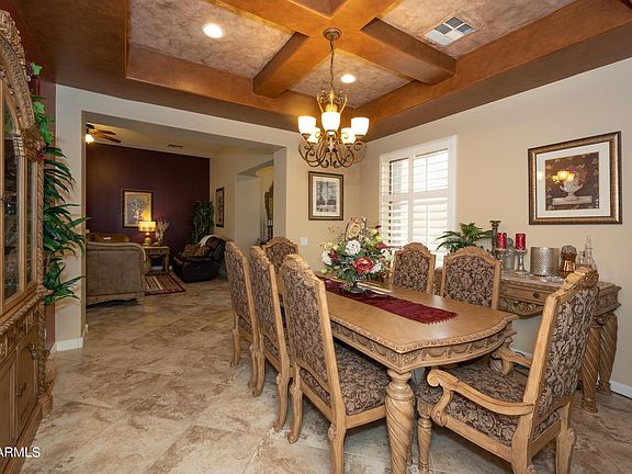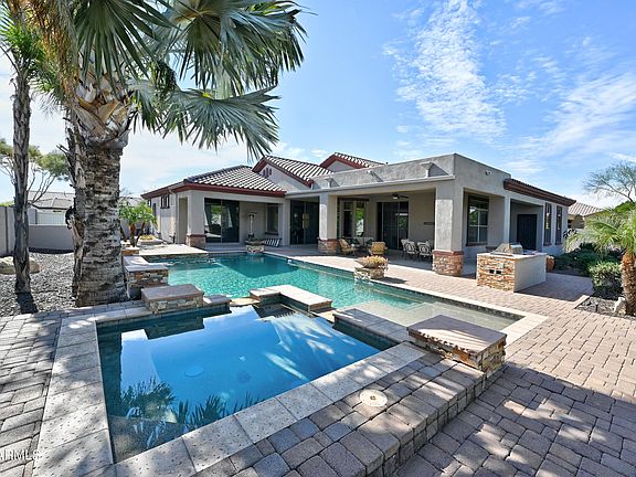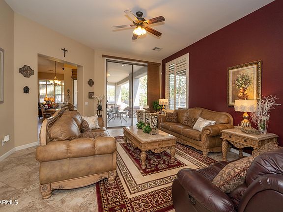 Exceptional home on 1/2 + acre lot. Easy care desert & turf, fruit trees, sparkling pool & spa, oversized covered patio & a built-in BBQ! Split plan w/4 bedrooms, 3.5 baths, office w/executive built in, bonus room, living room, formal dining room. Great room opens to the gourmet eat in kitchen w/stainless appliances, island, breakfast bar & a huge walk-in pantry! Custom plantation shutters thru-out, pre-wired alarm & sound systems. The master suite has its own thermostat, an oversized walk-in closet, walk in shower, soaking tub, double sinks, sliding doors to the pool & covered patio! Lightly lived in since 2013 by winter visitors, 4-5 months a year. Exterior painted, new water softener & R/O in 2022. New landscape lines 2019. Updated pool Dec 2021. Buy all furniture separate bill of sale