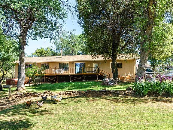 SEEKING: Buyer who desires a sanctuary- long walks in the park, sunsets, relaxing in the hot tub with a beverage, enjoys gardening and all types of outdoor recreation. Welcome to 18309 Davis Acres Road- a place where all of the above and more is available without leaving the house. This property is special; truly a place of solace and retreat. Postured on over 4 usable acres on a cul-de-sac, this property contains "Peaceful Oak Pond", trails, a fenced garden, outdoor stage set up, room for the animals (existing chicken coop), picnic area, level sand-pit, fire-pit area, space to play and spread out, a hot tub and pad, privacy and so much more- this park-like setting is sure to impress the outdoor lover. This well-loved homestead has been the setting of many events, including weddings, receptions, and even live-music festivals. The home itself has gated vehicle access from two sides of the fenced parcel, and plenty of parking (level RV parking as well!) in addition to the 2-car garage. The storage shed in the rear is also used as a work shop and does have a work bench. The garden area has raised beds and plenty of room to have a garden tea party. The trees have electrical outlets for easy outdoor lighting. There is an underground pvc pipe heading down to the pond, The new deck is the perfect spot to sit and enjoy the sunsets and views. With 3 bedrooms, 2 baths and 1,300 square feet, this single level home is inviting and welcoming. The semi-open concept living and natural light make the living area feel spacious and bright. Beautiful views can be seen through every window. The kitchen is attractive with it's stainless appliances and neutral colors. The guest bath offers a stand up shower and slate tile flooring. The master has stone tile flooring and a tub/shower. The bedrooms are sizable. This home is perfect for someone who enjoys a smaller home with a large amount of land. It is on public water and sewer. The desirable location off Yosemite Road is minutes to town and Black Oak Casino, and a short drive to Dodge Ridge Ski Resort, National Parks, Pinecrest Lake and so much more. Call to see in person today!