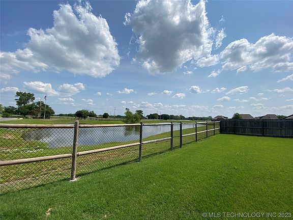 Adorable 3 bedroom, 2 bath home overlooks neighborhood pond. Ceramic tile flooring through entire home for easy maintenance. Open floor plan with large living room and vaulted ceiling. Kitchen has granite counters and dark walnut stained cabinets, gas stove, eat-in area and pantry. covered front porch and covered back patio stubbed for gas grill connection with pond view! Broken Arrow schools!