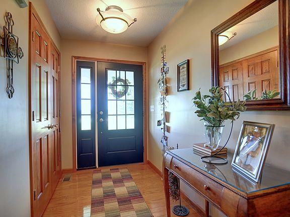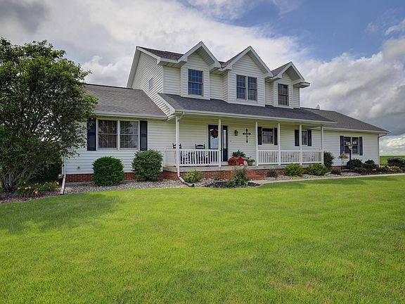 Enjoy relaxing evenings from the rocking chairs on the front porch, kick back and chat in front of the fireplace or gather in the hub of the home- the kitchen, open to the dining room. This home has lots of space and function. First floor master with vaulted ceiling, double sinks, separate shower and jetted tub. 4 more bedrooms and 2 additional full baths. Hardwood floors, second stairs from garage to bsmt. Full basement, plumbed for another bath. 46 x 80 shed with concrete floor, heated, 16' door, additional insulation. Home has been pre-inspected. This is country living at it's best.
