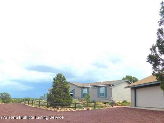 ACREAGE LIVING AT ITS BEST! Situated on 40 acres it offers a stock pond that is home to wildlife and occasionally elk. The owner has also set up a small gun range. A landscaped front yard includes numerous plants and flowers with an attractive native flagstone path leading to the entrance of the home. It is surrounded with an attractive wooden fence and the strategically built rear deck allows a spectacular view of the San Francisco Peaks and the surrounding mountains. Inside the home is an open floor plan with a sunken family room complete with a cozy fireplace. The large master bedroom, bath and closets offer privacy. The solar system and generator provide a strong source of power with automatic generator backup. Top this special property off with a 3 car garage.