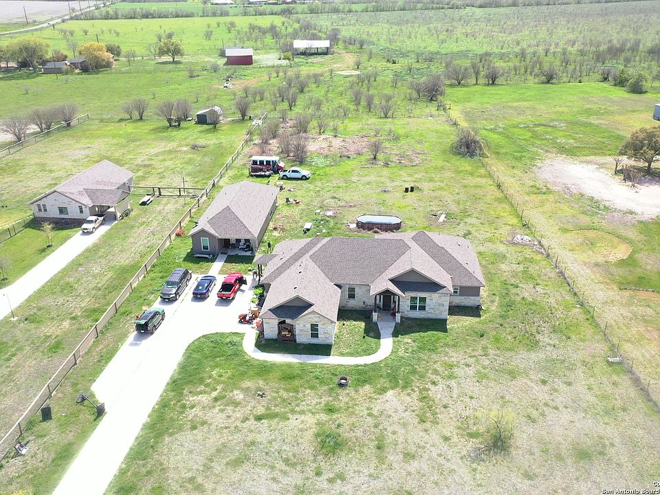 PRICED TO SELL- TWO HOMES, ONE PROPERTY! Welcome to this extraordinary & unique property! This one-of-a-kind property boasts not just one, but TWO stunning houses, all nestled on a sprawling 1.7 acres of pure tranquility. Privacy is not an issue here, as you'll be delighted to find that your backyard backs up to a magnificent 31 acre ranch, ensuring an extra layer of serenity. The main house spans over 2547 sf. As you step inside, you'll immediately be greeted by an abundance of natural light that perfectly illuminates the wood-like tile flooring. The soaring 14 ft ceilings create a grand and welcoming atmosphere. This home offers 5 spacious bedrooms, 2.5 baths, and a 2-car insulated garage providing ample space for your family and guests. The split floor plan allows for an escape to your very own oasis in the owners' retreat, where two walk-in closets provide ample storage and organization. A whirlpool tub, enormous walk-in shower, and double vanities offer convenience, style, and relaxation. The gourmet kitchen is a chef's delight, adorned with stainless appliances, a spacious island, and not just one, but two ovens! The custom cabinetry and counters add a touch of elegance to this culinary haven. Just steps away, you'll find the spacious guest house, a rare and unique find. With 1555 square feet of its own, prepare to be charmed. This home offers 4 beds, 2 baths, a full size living room, and a fully equipped kitchen featuring granite counters, tons of cabinet space, and stainless appliances. It's perfect for hosting friends and family or perhaps as a potential income-generating rental. The possibilities are endless! Imagine evenings spent relaxing on the covered front or back patios that both homes offer, enjoying the tranquility that comes from being surrounded by nature. Built in 2019, both homes are a testament to modern craftsmanship. Handicap accessibility makes BOTH homes an inclusive haven for all. Whether you're seeking a multi-generational living opportunity or a private retreat, this is the place for you. This rare and unique find promises a lifetime of cherished memories. No HOA.