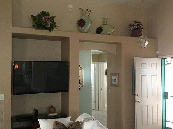 Very well maintained ready to move in home, All tile except bedrooms and Living room. Easy care yard, lovely screened in patio. Open kitchen to living room, fireplace, plant shelves.Good sized guest room with bay windows. Laundry room. Split floor plan, and den. Age restricted, and part of GV Recreation.