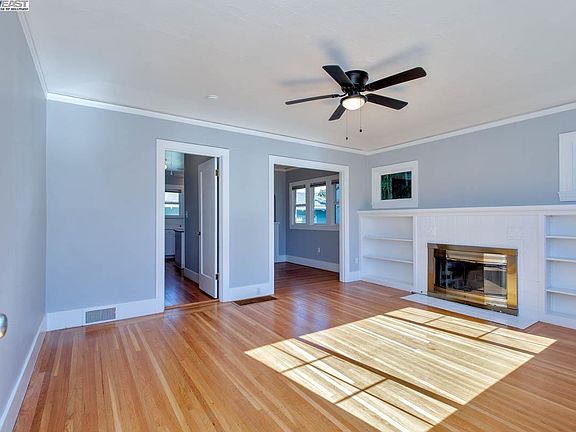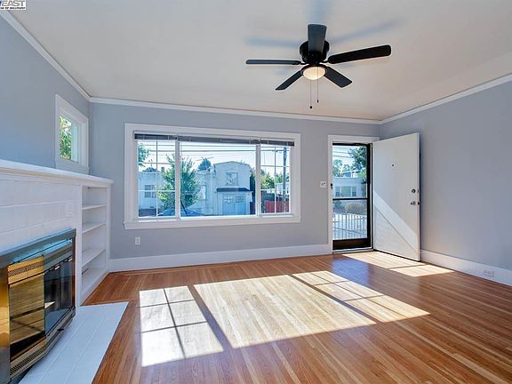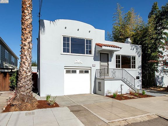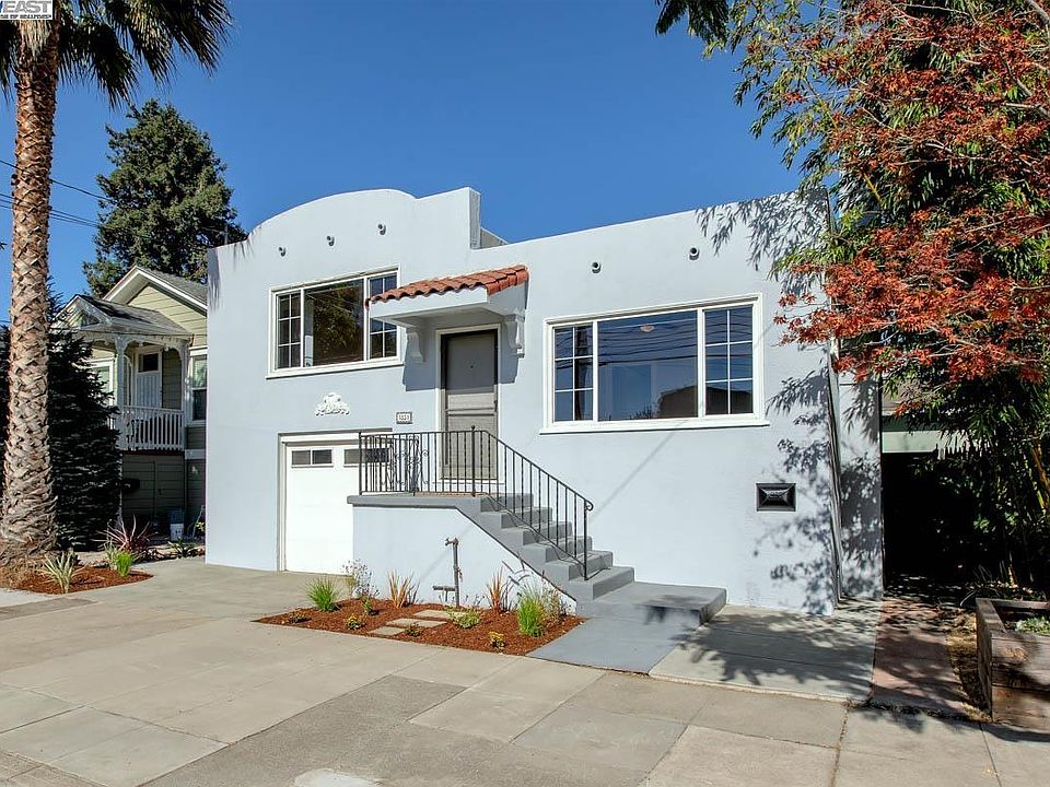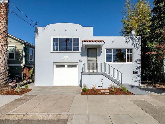 Built in 1925 on a leafy street just minutes to the many amenities on Park and Webster streets, this picturesque Spanish-style bungalow offers charm both inside and out! Located on a block filled with vintage homes from the same era, this split-level home features 2 bedrooms, 1 bathroom, traditional living and dining rooms, a sunny kitchen and an attached garage. Original details include gorgeous oak floors, a Craftsman brick and tile fireplace, picture rails and a built-in dining room china cabinet. Located on a SLOW Street (closed to through traffic-local traffic only), this central Alameda location is only blocks to AC Transit buses, and just minutes to Nob Hill Foods, Alameda Landing shopping, parks, Jean Sweeney Open Space Park, and convenient for off-island freeway access. First time available in 25 years! Upgrades in 2024 include: all new bath remodel, all copper plumbing + water heater, refinished hardwood floors, interior and exterior paint. Roof just 3-years new. With all the systems work done, enjoy the major benefit of putting your finishing touches into an already solid charming home. Neat as a pin – move right in! Transparent pricing, and seller will entertain offers as they come! Don't miss!