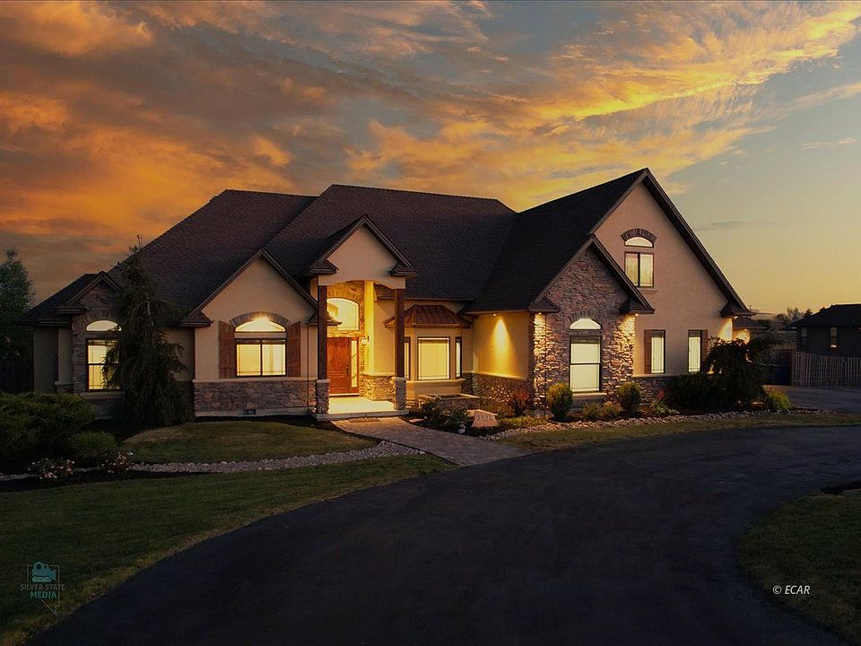 A fine piece of Real Estate with land in a highly sought neighborhood in Elko. The curb appeal on this house surely sets it apart in itself, there are LED Christmas lights around the eaves of the home, or you can use them all year round with the different color features! This home has the most spacious rooms, kitchen and a huge hidden walk-in pantry that is everyone's dream. The master is on the main floor, with its own deck access to a hot tub, spacious master bathroom, jetted tub and large walk-in shower and a closet you will definitely appreciate, with a washer and drier! Upstairs has an ensuite with a multi-use loft area adjoining two more bedrooms and bath and ANOTHER laundry room. Out back is a chefs dream with the outdoor kitchen and grille, and sitting area. The acreage has plenty of room for all your future plans!