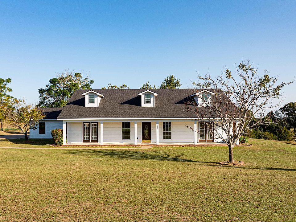 Stunning 3-bedroom, 3-bathroom home in Gilmer ISD, featuring custom details and an open, inviting layout. Upgraded throughout with gorgeous hardwood floors and a thoughtfully designed split-multi-primary suite floor plan. The kitchen boasts imported granite countertops, high-end custom cabinetry, a spacious breakfast bar, and a walk-in pantry. The expansive living area is filled with natural light and centered around a cozy wood-burning fireplace. The master suite offers a generous bath with dual walk-in closets, a relaxing jetted tub, and a separate shower. One of the secondary bedrooms includes a private bath, perfect for a mother-in-law suite or guest quarters. In addition to the three bedrooms, you will find a dedicated office space conveniently located just off the kitchen. This could also be utilized as an additional dining room or small living area. The oversized laundry room features custom cabinetry and a folding area for added convenience. Nestled on a picturesque one-acre lot, this home offers breathtaking views of rolling hills—truly a perfect blend of comfort and style!