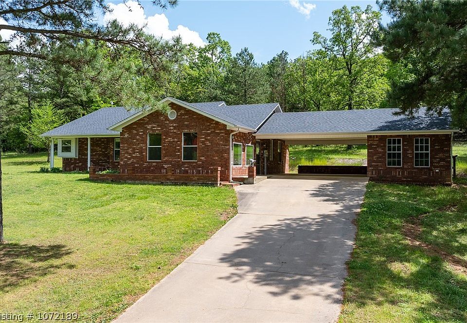 You've found your hidden paradise!! This updated, & meticulously maintained 3 bed 2 bath brick home with 50x60 shop is surrounded by Timber, & offers seclusion & privacy that is so hard to find anymore. The property boasts a 3 acre + pond fully stocked, with a septic & electric close by for a future cabin or pavilion. Trail system in place to access the wooded acreage, as well as cross fenced areas of pasture for animals, chicken coop, and an additional pond in wooded acreage. The shop is absolutely to die for, 50x60 with a 20 ft lean too all on concrete slab, insulated with wood burning stove, 200 amp electric, bathroom, 14 ft & 12 ft tall garage doors with openers, 2 entry doors, and additional 8ft roll up door. Bonus: solar panels on shop reduce total electric bill for house and shop to average 60$ per month. Home features split floor plan, with vaulted ceiling, wood burning fireplace with thermostat controlled blower and programmable thermostat in living room, large den/ family room with picture windows offering a beautiful view of pond and property. Well equipped kitchen with bay window, built-in curio, & pantry. Master bed has tray ceiling, walk-in closet, & private bath. The garage joining a 2 car attached carport is heated & cooled with a new mini-split unit, & would make a great office, work-out room, or man-cave! Home has had several recent upgrades, including new roof, windows, lighting, flooring, & fresh paint through-out. Also, fiber optic high speed internet to the house already. Schedule your viewing soon, & discover the peaceful serene beauty this wonderful place has to offer!!
