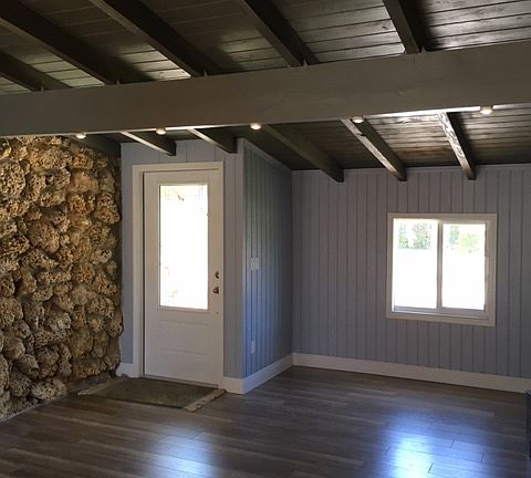 Located in the quaint seaside community of Juno Beach our remodeled home is being offered for sale. It is a beautiful 3 bedroom, 2 bath with gorgeous wood and brick interior in main areas. The bedrooms have new drywall and paint as well as the rest of the interior. The master bath has been remodeled as well as the guest bath with a modern flair. The kitchen has been totally remodeled with new quartz counter tops, stainless appliances, and tile flooring. The exterior boasts new siding over original brick. Out front there is the original Coral rock as well as the interior. Also, The original white stone wood burning fireplace is in the living room and is in working order. There is a new metal roof, skylights, hurricane impact windows, plumbing, electrical, olighting and flooring. New paint inside and out! New 4 zone sprinkler system. New sod front and back, new exterior patio and new front driveway! A must see!!!