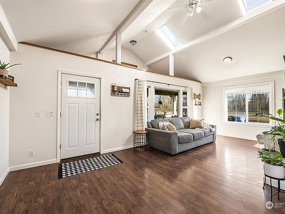Welcome home! Come fall in love with this riverfront home with storybook charm tucked away on a quiet road. Home sits on a 0.6 acre lot across the Puyallup River with stunning Mt Rainier views! Enter into an open floor plan with vaulted ceiling, a cozy fireplace, plus a loft. Tons of natural light flooding in from large windows and skylights. Finish the almost complete basement and 3rd bedroom for instant equity. RV/boat/trailer parking. Easy access to Hwy 161 and 410. Just minutes from quaint town of Orting, shops, restaurants, biking trails, and fishing!