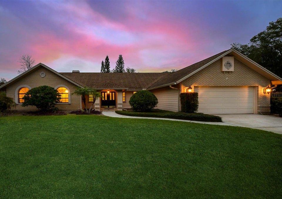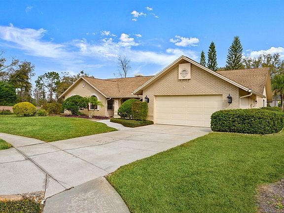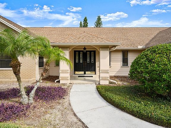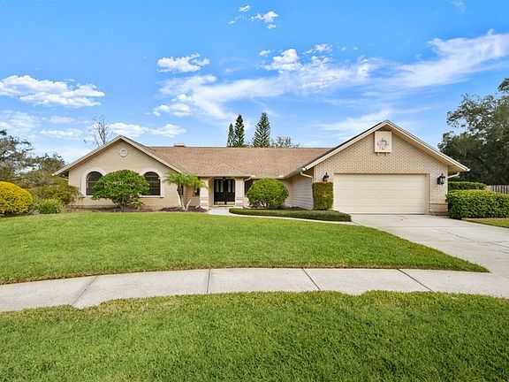 Welcome to your spacious new home on a CUL DE SAC with SPLIT FLOOR PLAN and HIGH CEILINGS! You walk through the front door to find an OPEN FLOOR PLAN comprised of a foyer, two dining rooms, formal living room, and family room; all have newer laminate flooring. Continue to the right passed the two dining rooms and into the master bedroom and en suite featuring a jacuzzi tub, separate shower, dual sinks, LARGE WALK-IN CLOSET, separate linen closet, water closet, and newer tile flooring. The master bedroom has a sliding glass door leading into the ENCLOSED PATIO overlooking the oversized landscaped back yard. Continue out the master bedroom past the dining rooms through the formal living room and into the family room with a wood fire place. There is a shelf unit beside the fire place that is plumbed to feature your very own WET BAR. You can choose to continue through the hallway to find three bedrooms and two additional bathrooms or you can step through the wall of sliding doors to the ENCLOSED POOL. The kitchen and breakfast nook connect the family room to the dining room and overlook the back yard. The kitchen has newer microwave, dishwasher, and tile flooring. It also features a REVERSE OSMOSIS WATER SYSTEM. The MATURE LANDSCAPED BACK YARD gives a sense of peace and serenity and has many fruit trees, a swing, fire pit, garden, swimming pool, and separate covered patio. Located in GATED and MANNED community of The Manors at Crystal Lakes. Sought after STEINBRENNER School District.