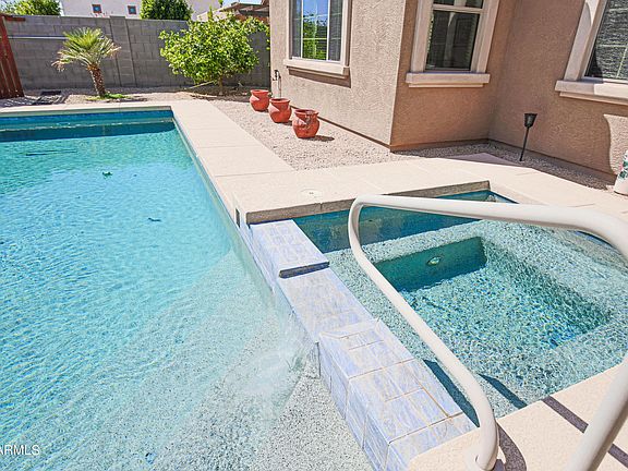 This is Arizona living at it's best! Spectacular single level home with all the amenities you could want. Huge covered outdoor kitchen to enjoy meals and drinks in the beautiful Arizona spring weather. When you get a little warm, take a dip in the sparkling pebble tech pool. As evening rolls around warm up by the gas fire pit, then relax in the built-in spa. Got toys? We've got room! Large RV gate leads to a concrete pad to park your RV, boat trailer, bring it all! With 4 bedrooms and 3.5 baths, there's plenty of room for family and friends. The eat-in kitchen and formal dining room give you multiple entertaining options when you want to be indoors. Minutes from the 303, everything is right at your doorstep. Hurry, there aren't many like this!