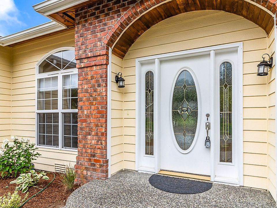 Welcome to this Beautifully Refreshed Rambler in Arlington. This three-bedroom, two-bathroom home features updated fixtures and new paint throughout, creating a modern and inviting space. The open concept floor plan flows seamlessly from room to room, with soaring ceilings, skylights, transom windows, French doors, and ceiling fans adding to the bright and airy feel. Enjoy the cozy gas fireplace and heat, gleaming hardwood floors, and a split floor plan with a luxurious primary suite complete with a five-piece bath and walk-in closet. Step outside to the covered entertainment patio overlooking the 11th tee, perfect for relaxing or hosting guests. With a three-car garage and included washer and dryer, this home has everything you need for comfortable living. Solid and stable income is required, with no evictions, criminal records, "roomie" situations, or pets allowed. Don't miss out on this fantastic opportunity - schedule a showing today! Minimum 12-month lease required.