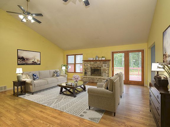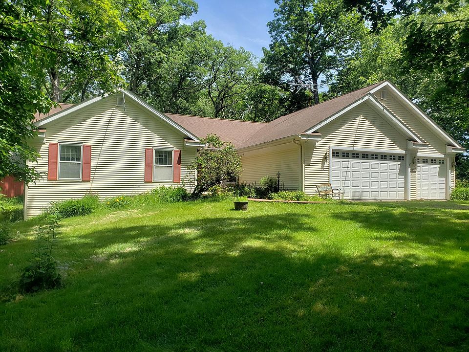 Magnificent 5 acre wooded estate with winding paths throughout property. Extra large Ranch, Living room with vaulted ceilings, newer Family room / Sunroom addition, gigantic unfinished basement, 3 bedroom, 2 full, 1 half bath. Large attached 3 car garage. Well maintained, and ready for new owners decorating ideas. Cleary Building with loft on the property.