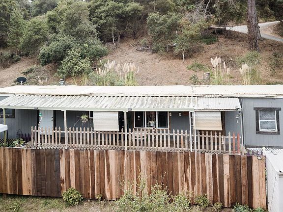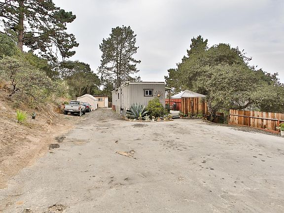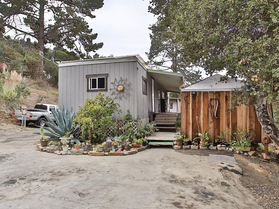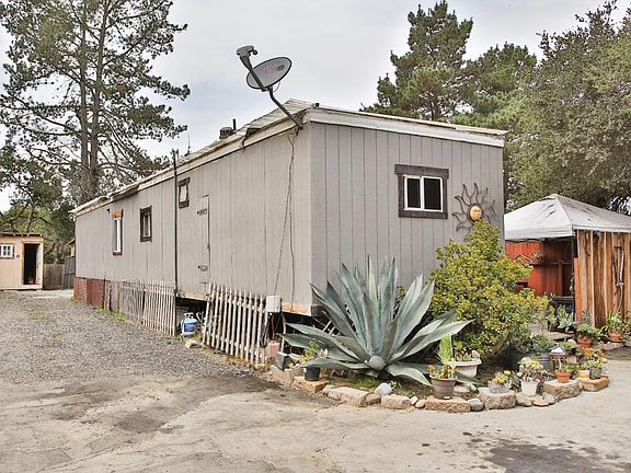 Single wide 2 bedroom 1 bath mobile home at the tip top of a steep drive in Prunedale. This property is 1.44acres. But only about 1/3 of an acre is usable and flat. The land is steep, wooded and has road easements. There is plenty of room for a double wide manufactured home and garage, and still have room to park. This home has a 2000 gallon concrete septic system that has been pumped and inspected also a shared well with 1/4 interest. There are 2 wood sided sheds/ outbuildings that have been sheet rocked inside ( no electricity) Sheds are 10x11 each. The current mobile home could be renovated and added on to, pull in a new one, or build a new home. Lots of potential and amazing views with a little tree trimming. Mobile home is NOT financeable (roof leaks) (not on a permanent foundation) Seller will only look at cash offers. DO NOT GO WITHOUT AN APPOINTMENT