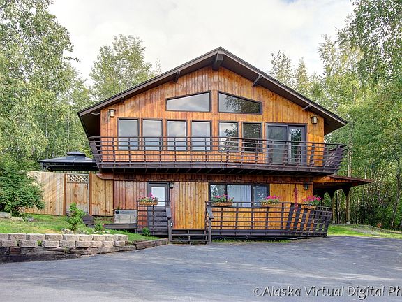 Wonderful Alaskan Home, Cathedral Ceilings, Spectacular sunset views, Huge private lot, huge garage, spacious kitchen, granite counters. Large bedrooms, great master with walk in closet and full bath. Deck with hot tub off master bedroom. Family room with wet bar and sauna.