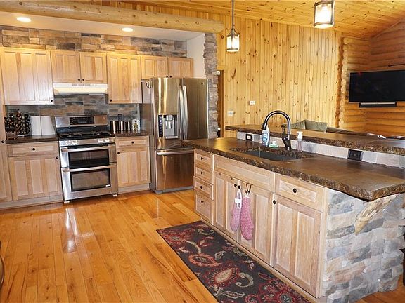 Amazing property tucked away amidst mature trees, ponds, and a long drive. This log home offers peace and tranquility. A wonderful retreat from a busy world! Newly remodeled gourmet kitchen, baths 2 new garages both attached and detached. Excellent curb appeal!