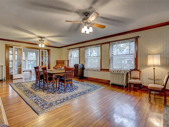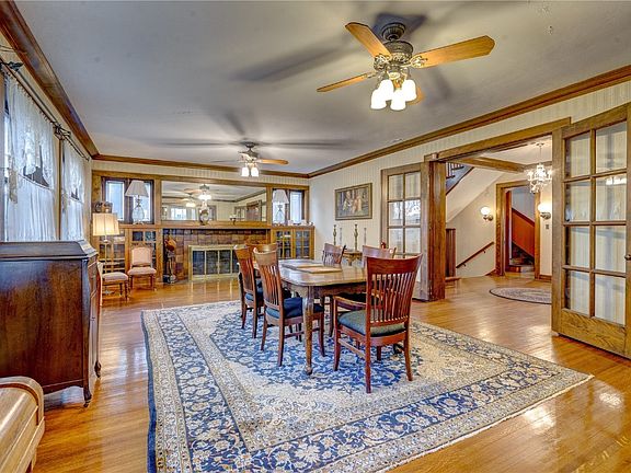 A truly remarkable and spacious home with plenty of character and history, over 5,000 square feet of living space! The double entry foyer creates a welcoming entrance, and the original woodwork in pristine condition adds to its charm. The grand staircase and stained glass features provide a touch of classic style. The main level includes a "water closet" with the plated "WC" on the door, maintaining the historical appeal. The living room or parlor area is adorned with a wood-burning fireplace featuring beautiful tile work. Built-in storage and display units anchor the space, while crown molding and hardwood floors contribute to the overall charm. With six bedrooms, all offering ample closet space, and two full baths, this home provides plenty of accommodation. The basement, boasting high ceilings, serves as a great hangout space and offers ample storage for your needs. The yard is fenced in, providing privacy and security, and a cement pad has been added for extra parking convenience. Overall, this grand old home offers a unique blend of character, charm, and history, along with the modern amenities you desire. Veterans...there is a $217,000 assumable loan at 3.75%!