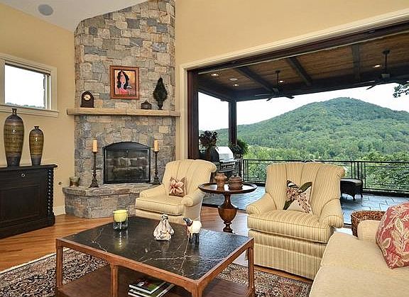Overlooking the 17th fairway and hole on Walnut Cove's Jack Nicklaus Signature golf course, this stately home offers impressive long-range mountain views and is the perfect home for entertaining. The light-filled, open floor plan features a gourmet kitchen with oversized island for casual dining, a dining area and great room that opens to a screened porch with retractable screens and wood burning fireplace. The main level owner's suite opens to the porch and has a spa-like bath and walk-in closet with natural light. The terrace level is all about entertaining with a wet bar, spacious living room, guest suite that opens onto the terrace, a bunk room with generously sized beds, and a flex room for a home gym, media room, or hobby area. Another spacious guest suite over the garage offers an abundance of privacy. The grounds feature extensive perennial and mature plantings for year-round interest. Many recent updates include HVAC system, outdoor path, and generator. Membership Available.