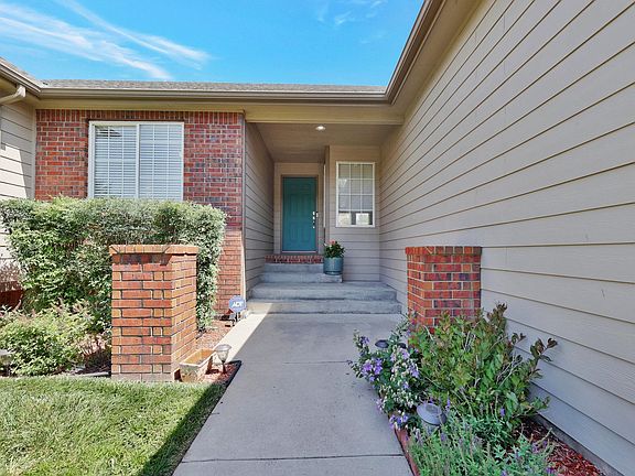 Well maintained and spotless ranch in Wyndham Creek. With over 1600 finished square feet on the main floor, this home provides ample living space and the opportunity to finish out the partially finished basement to bring the total finished area to 3200 sq ft. Open floor plan with vaulted ceilings, and a wealth of natural light greet you at the front door. This Robl built home stands out with it's added features and quality craftmanship. Living area with gas fireplace and built-ins adjoins the formal dining area, and is also open to the every day eating space and adjacent kitchen. The kitchen features a large serving area, tons of cabinets and counter space, pantry and stainless steel appliances which all remain. Ideal home and kitchen for entertaining - large serving area and two dining areas plus eating bar. Primary bedroom features walk in closet, and ensuite with dual sinks, soaker tub and separate room with water closet and shower. Two additional bedrooms, hall bath and laundry finish out the main floor. Mid-level walk out to totally fenced back yard, patio and additional outdoor living space - great for outdoor seating area or even an above ground pool. Sprinkler system and landscaped flower beds give this home great curb appeal. Step into the unfinished, view out basement to see the opportunity that exists to finish out and gain instant equity. Framing already in place for family room, two bedrooms and full bath with tub/shower combo already in place and functioning. Wyndham Creek is a neighborhood where pride of ownership abounds exhibited by the lawns and beautiful landscaping. Enjoy catch and release fishing at one of the neighborhood ponds, or take a stroll on the walking paths and don't miss the playground. This is a tucked away quiet little neighborhood yet is conveniently located to I-135, K-96. Basement finished sq ft is strictly an estimate of the 3rd full bath. This one is a cream puff!
