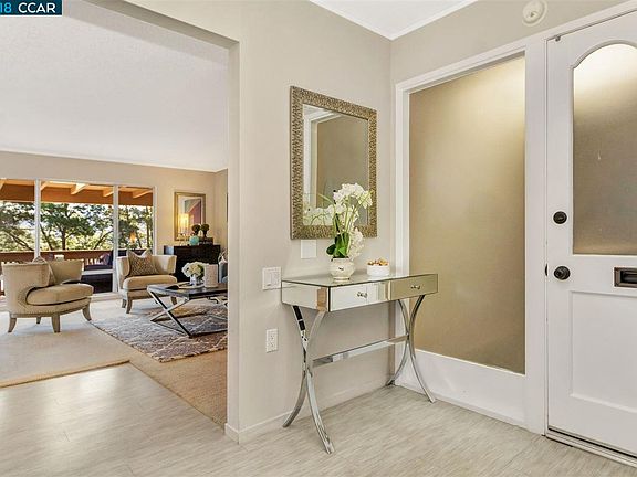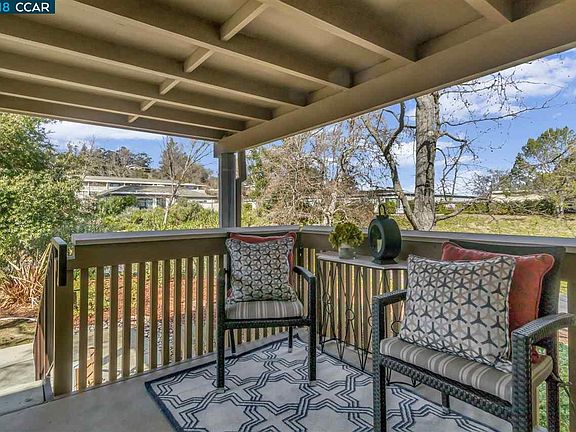 This stunning Sequoia Wrap features fresh, contemporary finishes, abundant natural light and a beautiful serene setting - a private retreat! The open, sky-lit veranda and a sunny enclosed "wrap" provide fabulous additional living spaces well beyond the original footprint. The finished enclosure, surrounded by windows on all sides, showcases a dramatic view of Mt. Diablo. Perfect as a den, office, exercise room, meditation space, or an artist's studio! The kitchen and bathroom have been updated with Carrara marble counters, Shaker-style cabinetry, and additional windows. The kitchen also features a gorgeous coffered ceiling with custom lighting, a stainless steel farmhouse sink and updated white appliances for additional sparkle. Dual-pane windows, full-size side-by-side washer and dryer and central heat/air complete the package! Close to carport and tons of guest parking. This manor is exceptional in all the right categories: condition, location, and price. Hurry!