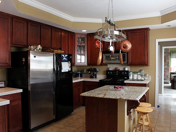 - Interior Features: Washer/Dryer Hookup, Window Treatments, Gas Logs, Work Island, Trey Ceilings