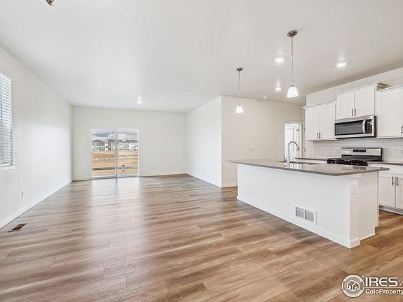 **READY NOW** Welcome home to the Elm plan at Hansen Farm in SE Fort Collins with no Metro District! The Elm is an open-concept layout with the main level featuring solid surface flooring throughout, a spacious open kitchen with an oversized kitchen island, classic beautiful white cabinets, and quartz countertops perfect for entertaining. The downstairs also features a bedroom and full bath. Upstairs, you'll find a large primary bedroom that features two walk-in closets with ample storage space and an en-suite bathroom with a double vanity sink. The second level also features 3 additional bedrooms, a bathroom with dual sinks, and a laundry room. The home includes the front yard and backyard landscaping with irrigation, sod, and rock also A/C, a tank-less hot water heater, and the smart home package! Hansen Farm is conveniently located near all your shopping and recreational needs. Power Trail access is coming soon to Hansen Farm and makes this home a must see! *Photos are representational and not of actual home*