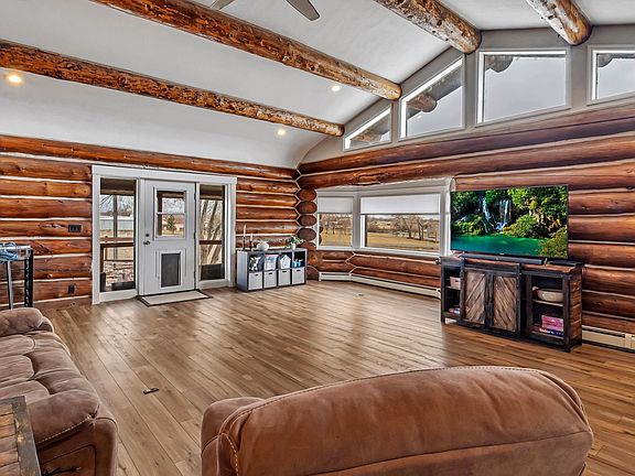 Need a home with a picturesque setting and a place for all your hobbies, projects and toys –Then look no further!! This unique log home is a ranch w/ a walk-out basement style that features 3,046 square feet and sits on 3 acres of land. The home boasts a spacious wide-open floor plan with 4 bedrooms, (2 primary suites) 4 baths and detached 30x24 heated (wood stove) garage/shop. The main floor has an updated kitchen with newer fixtures and flooring in most areas and one of the primary suites. The lower level includes an additional living space, primary suite, bathroom, laundry room, and 2 other bedrooms. No HOA, irrigation pond and an additional 20x20 shed. Embrace the vast potential of this acreage and beautiful home. All information deemed reliable but not guaranteed & should be verified by Buyer(s).