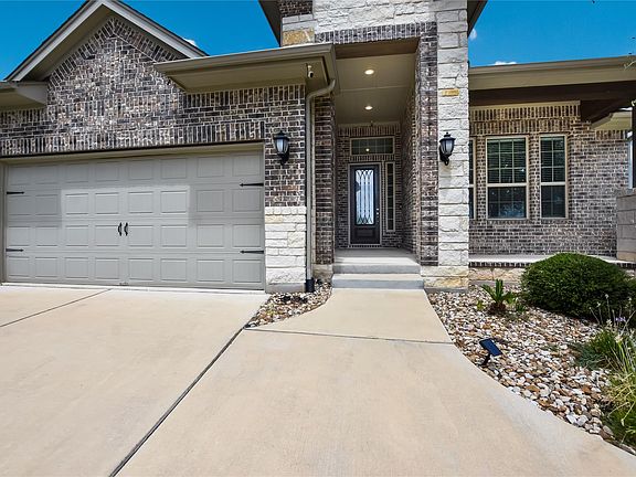 Welcome to this gorgeous single-story 3-bedroom, 3.5-bath home in the highly sought-after Travisso community. With over 2,300 square feet of thoughtfully designed space, this home boasts an open floor plan with soaring 14-foot ceilings throughout the living, dining, and kitchen areas, creating a bright, airy, and inviting atmosphere. The chef’s kitchen features a gas range and flows effortlessly into both a casual breakfast area and a more formal dining area, making it ideal for everyday living and entertaining. Two expansive primary suites with walk-in closets provide comfort and flexibility, perfect for multi-generational living or hosting guests in style. Step outside to enjoy a stunning Hill Country view from the front porch, or retreat to the large fenced backyard that’s perfect for gatherings or peaceful evenings under the Texas sky. A rare bonus, a climate-controlled garage adds versatility for storage, hobbies, or a home gym. Nestled at the end of Monopoly Path, the home offers privacy and tranquility. Beyond your doorstep, Travisso offers resort-style amenities including pools, a splash pad, pickleball and sport courts, a state-of-the-art fitness center, and a beautiful clubhouse, all surrounded by the breathtaking scenery of the Hill Country. This home is the perfect blend of modern luxury, comfort, and community living.