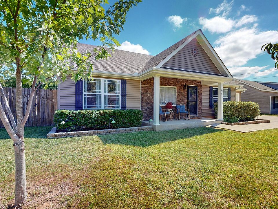 Open Saturday, October 8 from 2:00-4:00. Fantastic one-level home in quiet subdivision! Gorgeous fenced backyard with screened-in patio and storage building. Interior features vaulted ceilings, zoned bedrooms, and spacious den at the back of the house. Concrete driveway, sidewalks in neighborhood for strolling. This one is clean and 100% move-in ready!