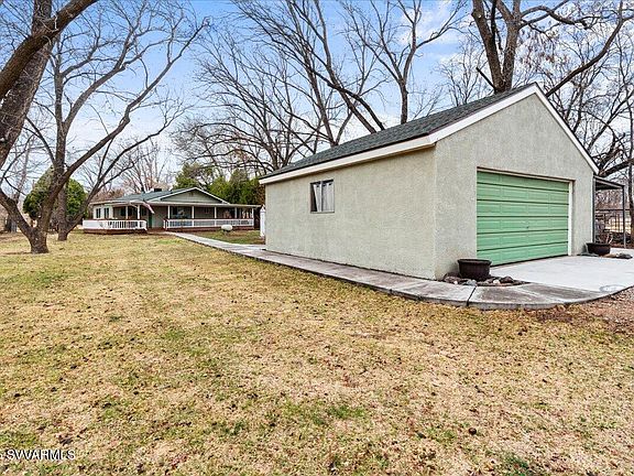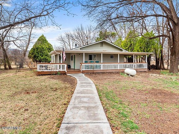 A BEAUTIFUL PLACE TO CALL HOME! Perfect size 1.14 acre parcel in the green belt area of Camp Verde, near the river with irrigation rights. Chicken coop, out buildings , a gorgeous garden and room for all of your farm animals. Grow your own food for healthy living. Full of pecan trees and other fruit trees. Home is on a cul-de-sac so very little traffic. Wrap around porch offers your outdoor tranquility. Property is full fenced, has an oversized two car detached garage and is on a well for your own water source. Reverse osmosis, refrigerator, washer, dryer and a riding lawnmower all included!