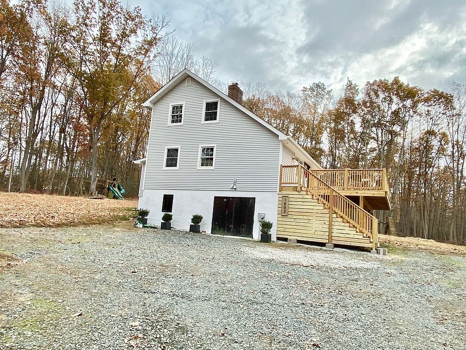 - 3 bedroom - 2 full bathroom - Updated kitchen with brand new appliances - Central air and heat pump. - Real, refinished hard wood flooring throughout most all of living space and bedrooms. - 4.05 acres (mostly wooded) approximately 1.5 acre yard. - Unfinished walk out basement; lots of potential. - New deck with under deck secluded/protected area for entertaining or storage. - All new Anderson windows - New front and back entry doors - all new vinyl siding **privacy galore!!** Bring your livestock; there’s space!!
