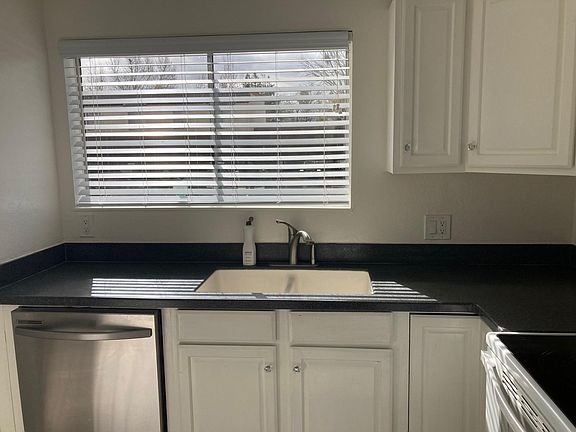Quiet, ground floor end unit with no upstairs neighbors. Unfurnished and super clean. Two bedrooms with full closets and shelving. The bathroom has a separate jacuzzi tub and shower. In-unit washer and dryer, kitchen has all newer appliances. Living room has a sliding glass door that opens to a large, private patio. Parking includes one covered space right in front of unit, and a non-covered space just a few feet away. Complex has a pool and is located in a lush neighborhood with walking paths nearby. Owner pays for water and garbage. Renter responsible for gas and electric. No smoking allowed. Up to two cats permitted. Unit has two designated parking spots very close to front door.