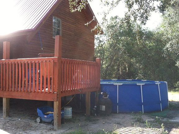 2-Story LOG HOME on 10 ACRES.Nestled on a naturally hardwooded 10 acres, this 3 bd/2 ba log home is a rare find!This 2000sf home has a large, open bonus area upstairs w/2 bdrms & bath. Downstairs is Master Bdrm/bath, living, dining and kitchen.Newer home, built 2008.Wood laminate, tile & carpet floors and wood cabinets.Large front porch and side deck w/above ground pool for outdoor living.Workshop w/attached covered area for parking or tractor storage. Private location at the end of dead end road.Country living at its best!