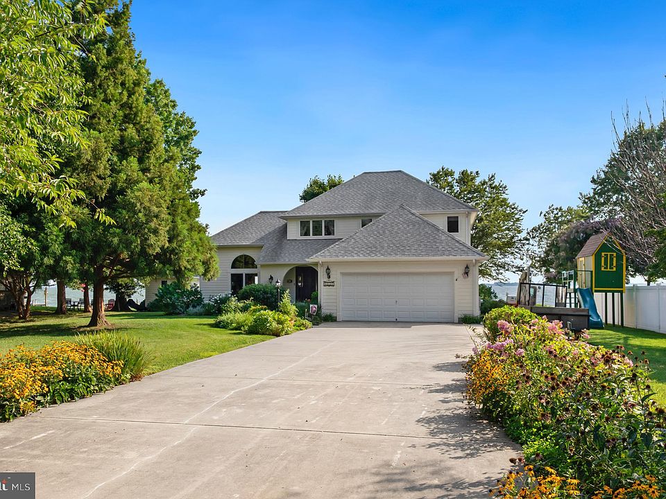 BRAND NEW BULKHEAD AND REBUILT DOCK!!! A beautiful 2 story, 3 bed, 3 bath home in the highly desired community of Marling Farms.Welcome to top rated waterfront living on Maryland’s Eastern Shore. This house is well cared for and meticulously kept by the original owners of 25 years. Hardie Board, Artisan Lap siding covers the exterior and an architectural shingle roof. A concrete driveway leads to an attached 2 car garage with workbench and pegboard walls for tool storage. There's both a house entry and pedestrian door in the garage. Entering the home through the front door onto specialty milled solid wormy oak flooring, you’re met with panoramic views of Crab Alley Bay through a large window in the sitting area and french doors off the living room. The living room features high ceilings, one wall adorned with beautiful, custom built solid oak book shelves built from specialty milled material, and large windows allowing hours of natural light to pour in. The kitchen continues the bay views with a window over the large farm sink and sliding doors that lead to the sunroom. Full bathroom and separate dining room on the first floor. Through the sunroom or living room, step out onto the large stone patio with a chiminea. The second floor has 3 bedrooms and 2 full baths. Primary bedroom includes an ensuite with a steam shower and large jacuzzi tub, spacious walk-out balcony, walk-in closet, and large storage area. From the views to water access to magical sunsets to breeze -this property has it all!