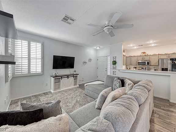 LOCATION, LOCATION, LOCATION!!!! WELCOME HOME TO THIS CHARMING SINGLE STORY IN SUMMERLIN! QUAINT FRONT PORCH* UPGRADED KITCHEN WITH STAINLESS STEEL APPLIANCES AND SINK* QUARTZ COUNTER TOPS AND FULL TILE BACK SPLASH* TILE FLOORING THOUGH OUT AND CARPET IN BEDROOMS* WHITE SHUTTERS* CEILING FANS IN ALL ROOMS* CABINETS IN LAUNDRY ROOM* BACKYARD COVERED PATIO AND SYNTHETIC GRASS FOR EASY MAINTENANCE! SCREEN FRONT DOOR* AND SO MUCH MORE TO APPRECIATE!!!